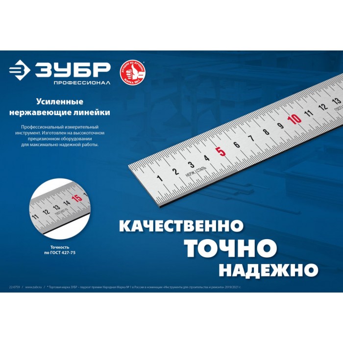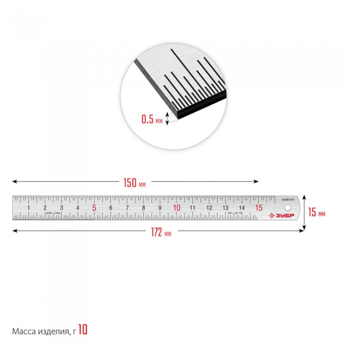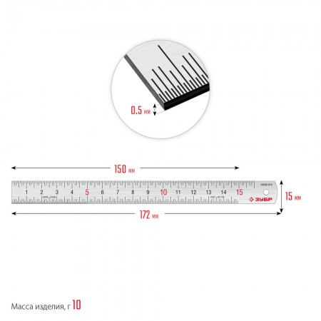 Усиленная нержавеющая линейка длина 0.15 м Профессионал ЗУБР Про-15 34280-015