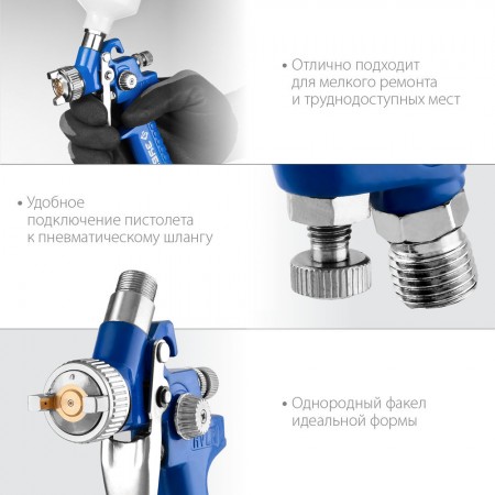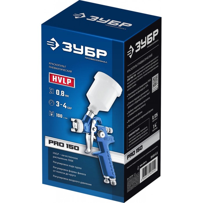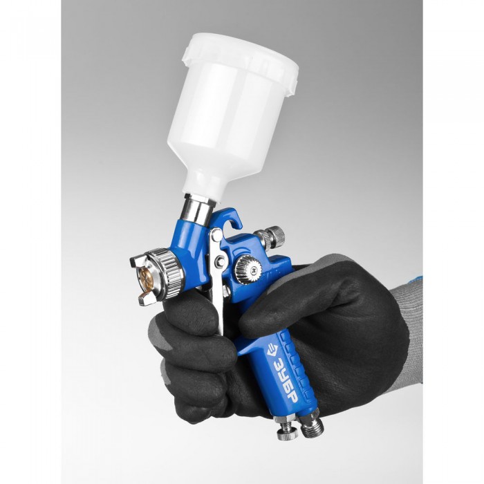 Профессиональный пневматический краскопульт ЗУБР ″ПРО 150 Мини″ - надежный инструмент для окрасочных работ в мастерских на специализированных предприятиях, отличающийся точностью и долгим сроком службы