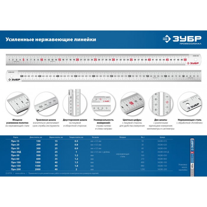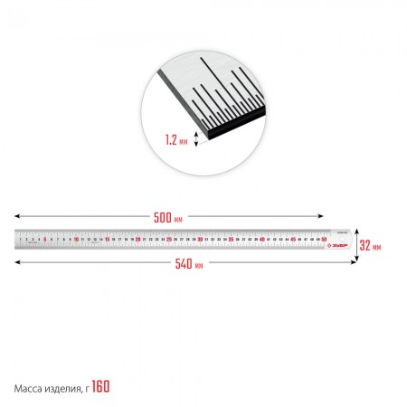 Усиленная нержавеющая линейка длина 0.50 м Профессионал ЗУБР Про-50 34280-050