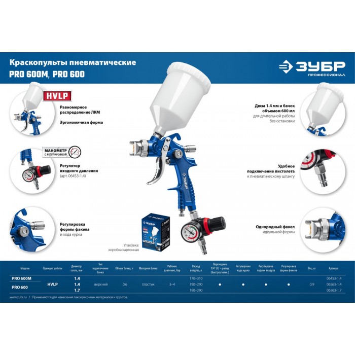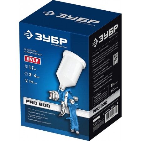 Краскопульт пневматический PRO 600, HVLP, 1.7 мм, с верхним бачком ЗУБР Профессионал 06563-1.7_z01