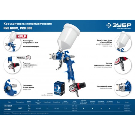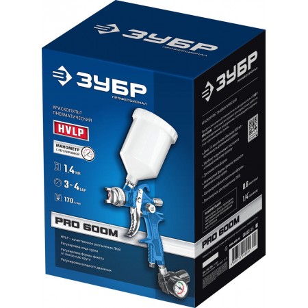 Краскопульт пневматический PRO 600M, HVLP, 1.4 мм, с верхним бачком ЗУБР Профессионал 06453-1.4_z01