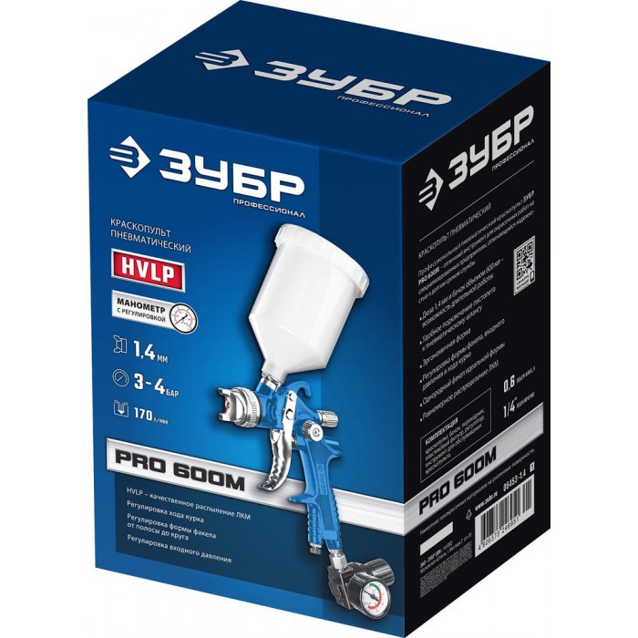 Профессиональный пневматический краскопульт ЗУБР ″ПРО 600″ - отличный инструмент для окрасочных работ на специализированных предприятиях, отличающийся надежностью и долгим сроком службы.