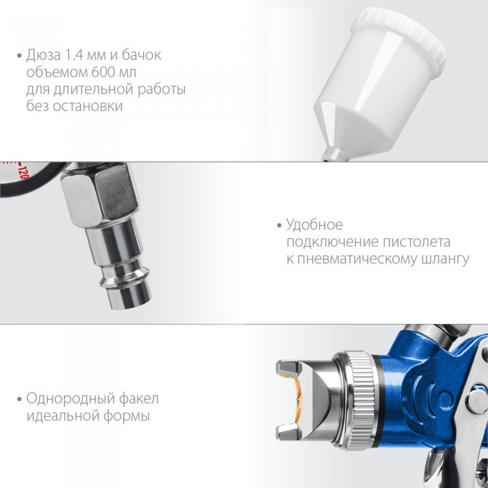 Дюза 1,4 мм и бачок объемом 600 мл - возможность длительной работы без остановки