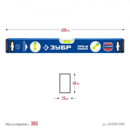 Уровень магнитный усиленный ПРО-М 400 мм ЗУБР Профессионал 34589-040_z01
