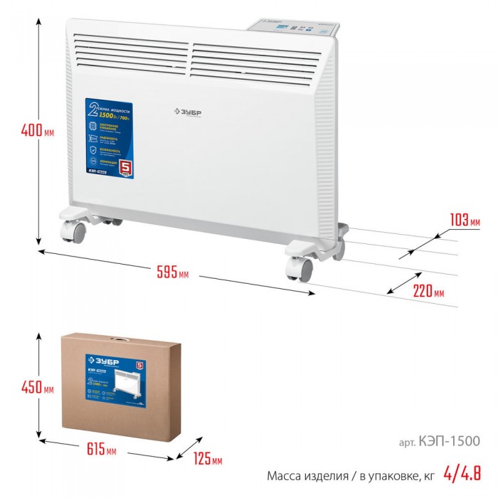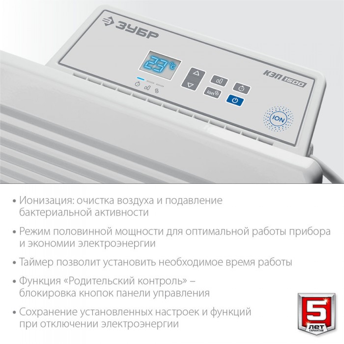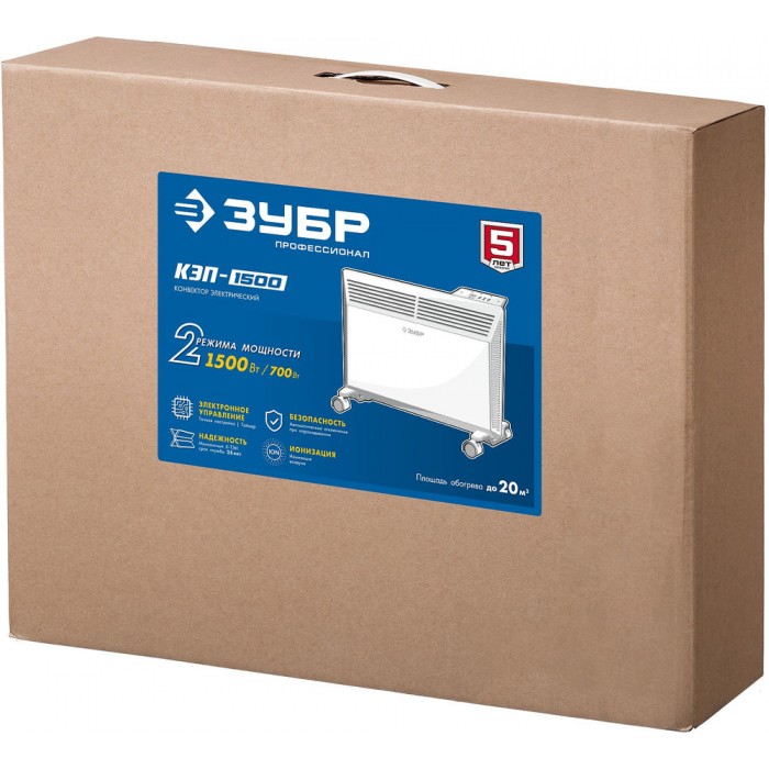 Электрический конвектор ЗУБР ПРОФЕССИОНАЛ мощностью 1500 Вт - подойдет для обогрева любых домашних и офисных помещений, включая ванные комнаты, площадью до 20 м2. Электронный терморегулятор и ионизация воздуха обеспечит равномерный нагрев помещения и создаст неповторимую атмосферу комфорта. Сделано в России