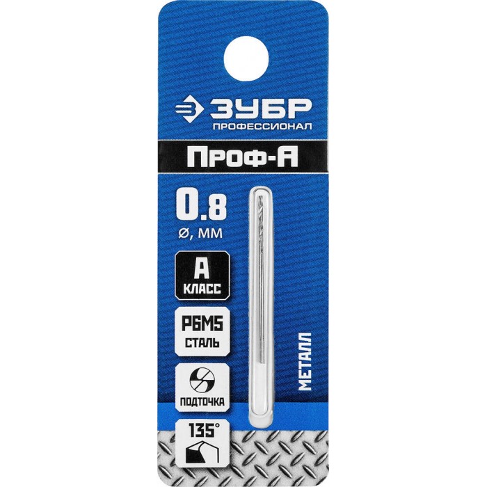 Сверло по металлу 0.8 x 30 мм сталь Р6М5 класс А ЗУБР ПРОФ-А Профессионал 29625-0.8