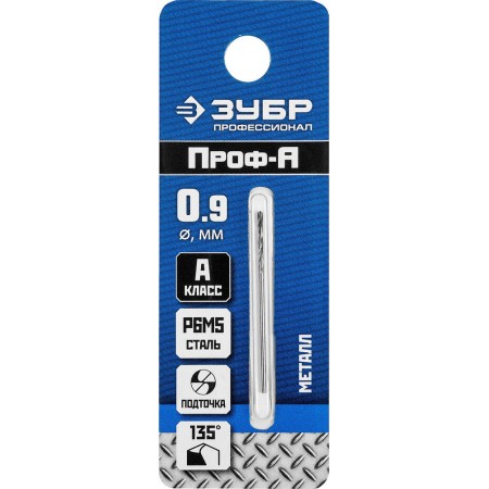 Сверло по металлу 0.9 x 32 мм сталь Р6М5 класс А ЗУБР ПРОФ-А Профессионал 29625-0.9