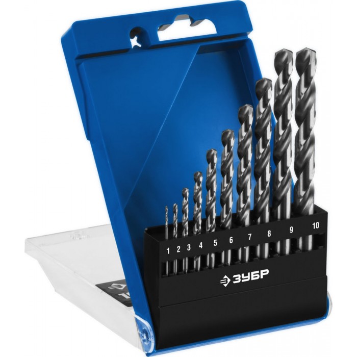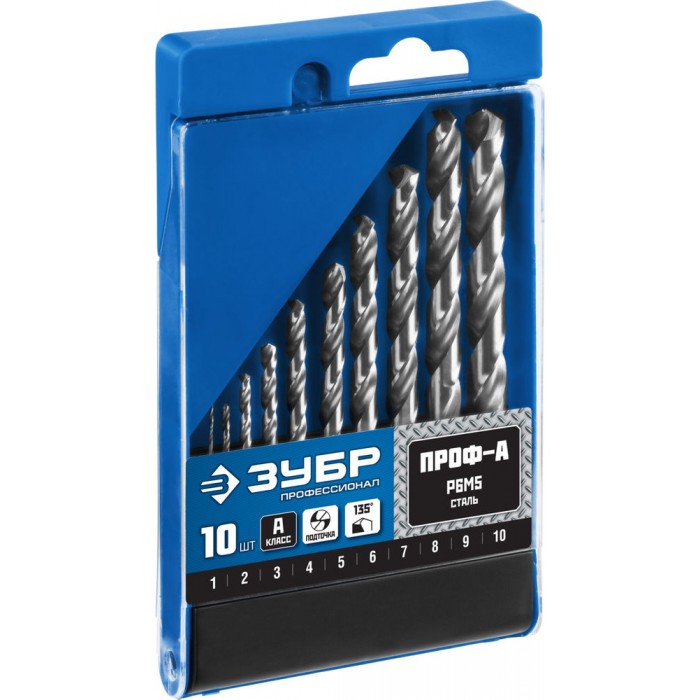 Набор сверл по металлу 1-10 мм 10 шт сталь Р6М5 класс А ЗУБР ПРОФ-А Профессионал 29625-H10