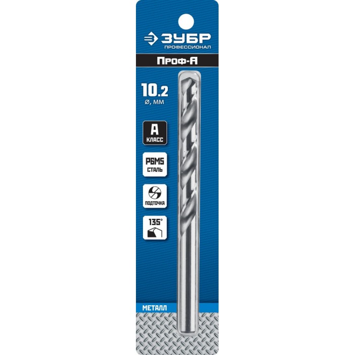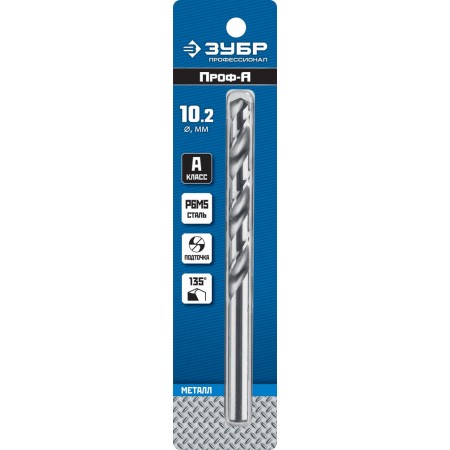 Сверло по металлу 10.2 x 133 мм сталь Р6М5 класс А ЗУБР ПРОФ-А Профессионал 29625-10.2