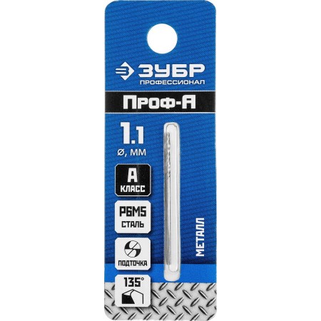 Сверло по металлу 1.1 x 36 мм сталь Р6М5 класс А ЗУБР ПРОФ-А Профессионал 29625-1.1