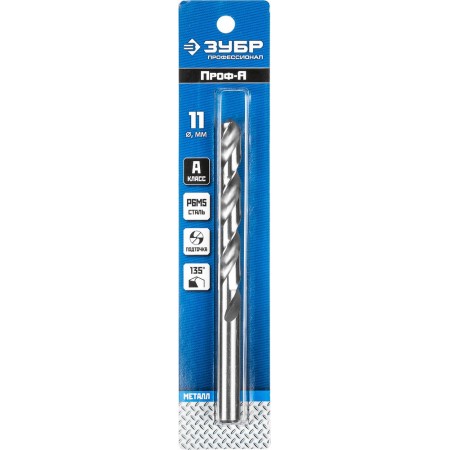 Сверло по металлу 11.0 x 142 мм сталь Р6М5 класс А ЗУБР ПРОФ-А Профессионал 29625-11