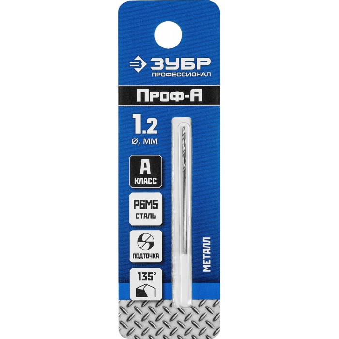 Сверло по металлу 1.2 x 38 мм сталь Р6М5 класс А ЗУБР ПРОФ-А Профессионал 29625-1.2