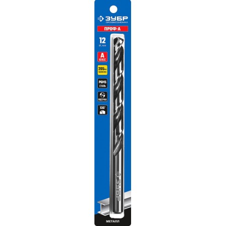 Сверло по металлу удлиненное 12.0 x 205 мм сталь Р6М5 класс А ЗУБР ПРОФ-А Профессионал 29624-12