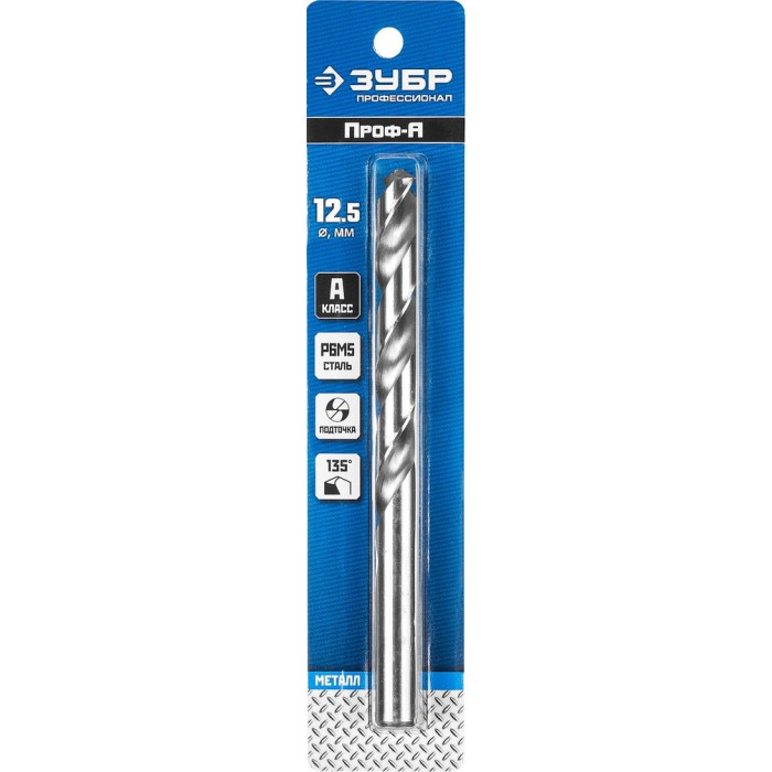 Сверло по металлу 12.5 x 151 мм сталь Р6М5 класс А ЗУБР ПРОФ-А Профессионал 29625-12.5