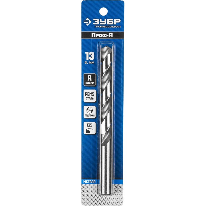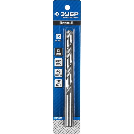 Сверло по металлу 13.0 x 151 мм сталь Р6М5 класс А ЗУБР ПРОФ-А Профессионал 29625-13