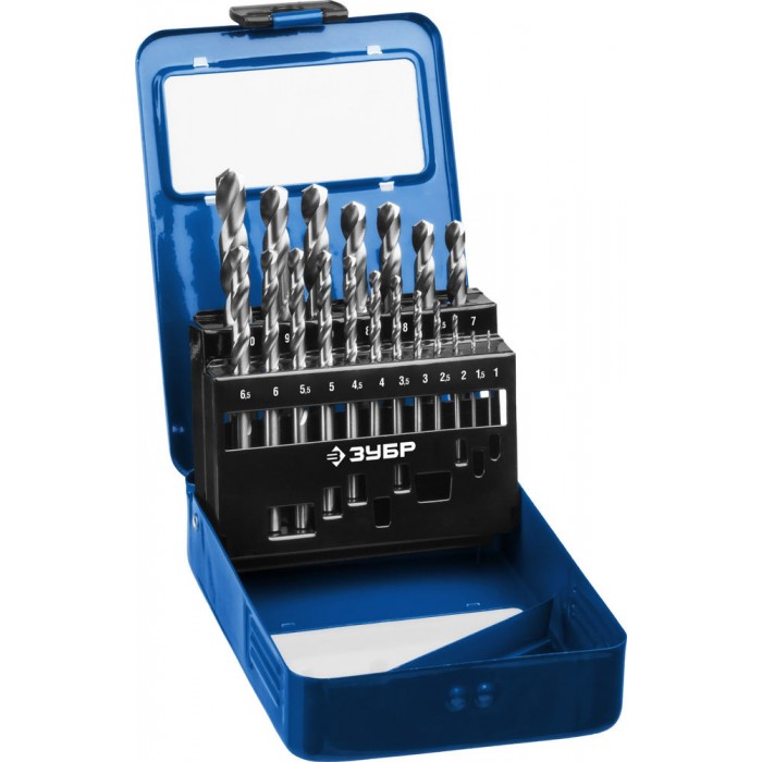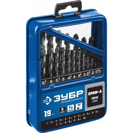 Набор сверл по металлу в мет. боксе 1-10 мм 19 шт сталь Р6М5 класс А ЗУБР ПРОФ-А Профессионал 29625-H19