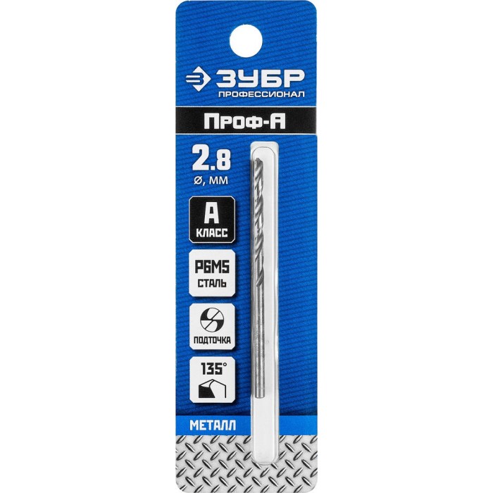 Сверло по металлу 2.8 x 61 мм сталь Р6М5 класс А ЗУБР ПРОФ-А Профессионал 29625-2.8