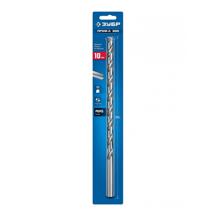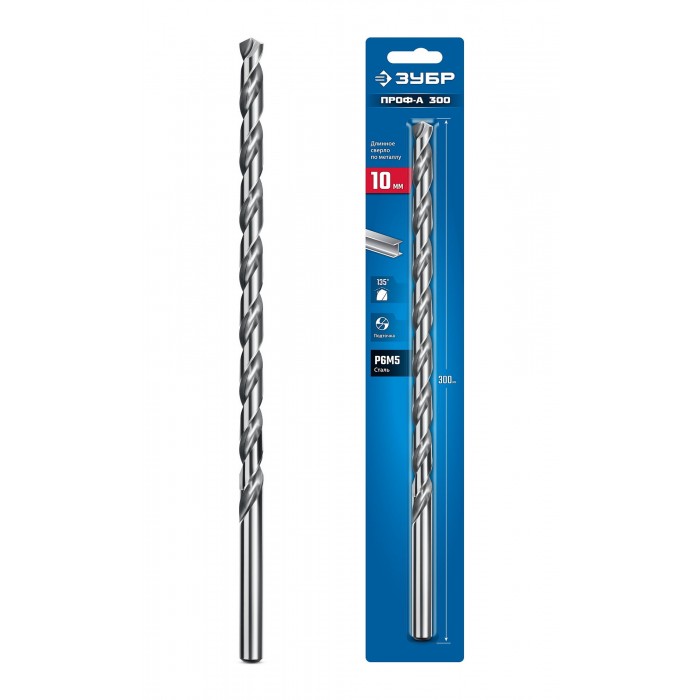 ЗУБР ПРОФ-А 300 (10х300 мм, Р6М5) длинное сверло по металлу, класс А (29624-10-300)