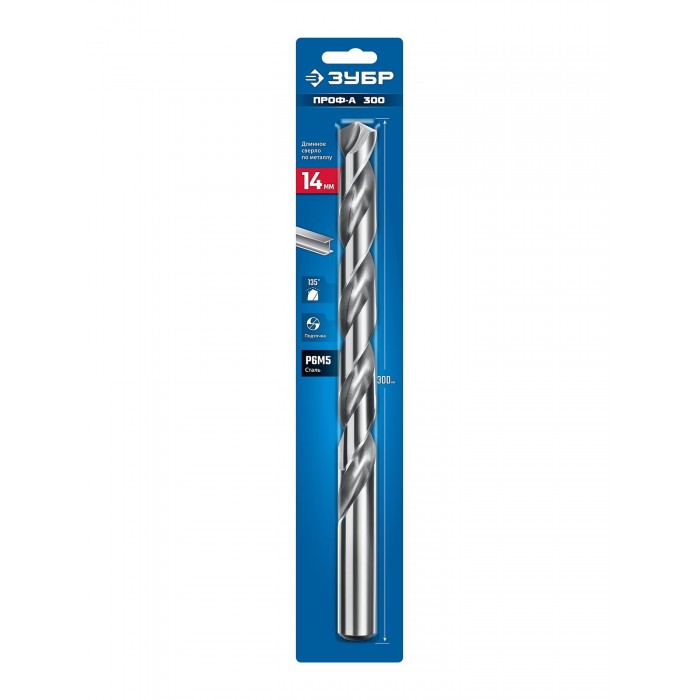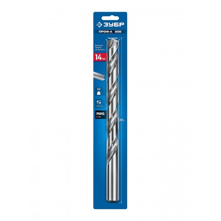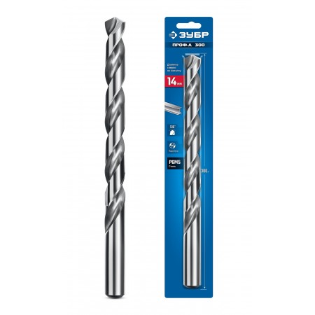 ЗУБР ПРОФ-А 300 (14х300 мм, Р6М5) длинное сверло по металлу, класс А (29624-14-300)