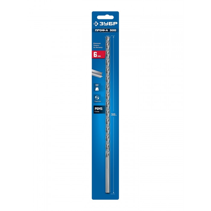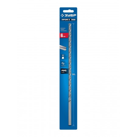 ЗУБР ПРОФ-А 300 (6х300 мм, Р6М5) длинное сверло по металлу, класс А (29624-6-300)