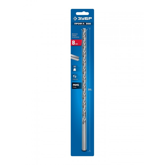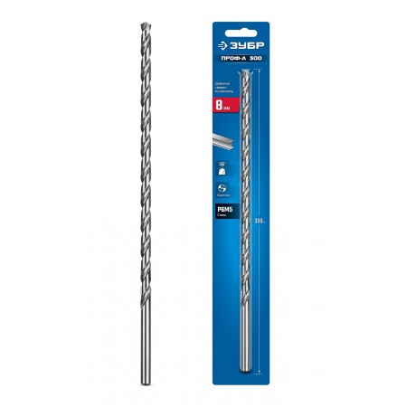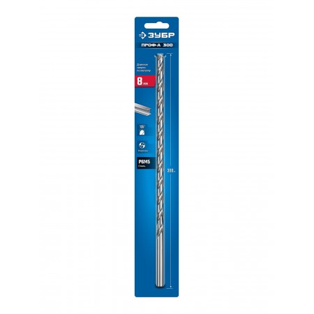 ЗУБР ПРОФ-А 300 (8х300 мм, Р6М5) длинное сверло по металлу, класс А (29624-8-300)