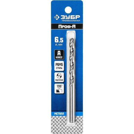Сверло по металлу 6.5 x 101 мм сталь Р6М5 класс А ЗУБР ПРОФ-А Профессионал 29625-6.5