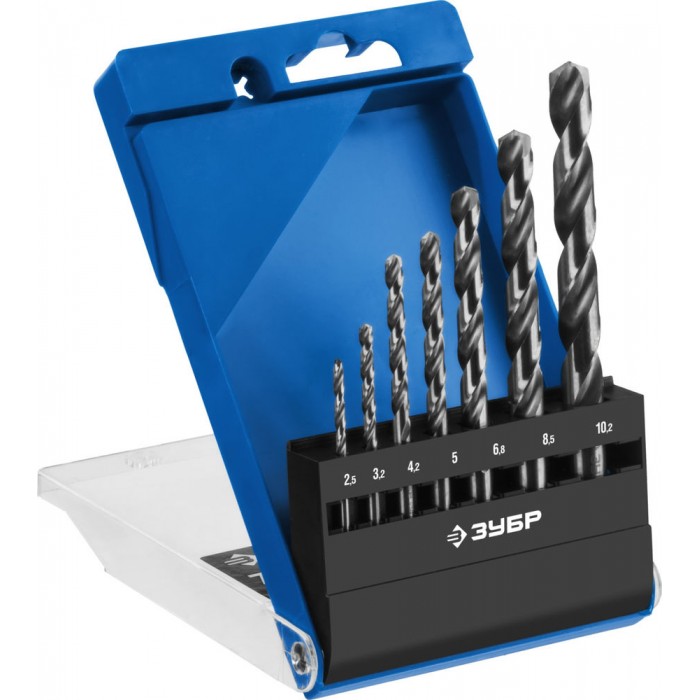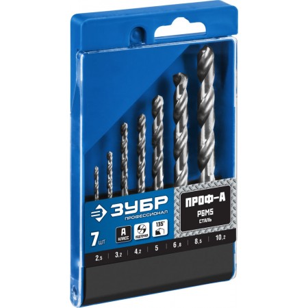 Набор сверл по металлу резьбовой 2.5-10.2 мм 7 шт сталь Р6М5 класс А ЗУБР ПРОФ-А Профессионал 29625-H7R