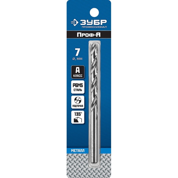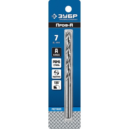 Сверло по металлу 7.0 x 109 мм сталь Р6М5 класс А ЗУБР ПРОФ-А Профессионал 29625-7