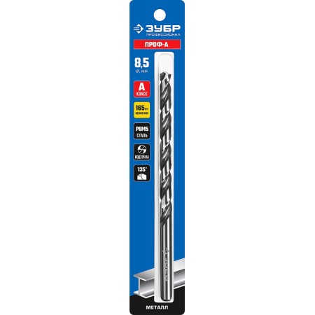 Сверло по металлу удлиненное 8.5 x 165 мм сталь Р6М5 класс А ЗУБР ПРОФ-А Профессионал 29624-8.5