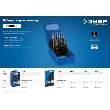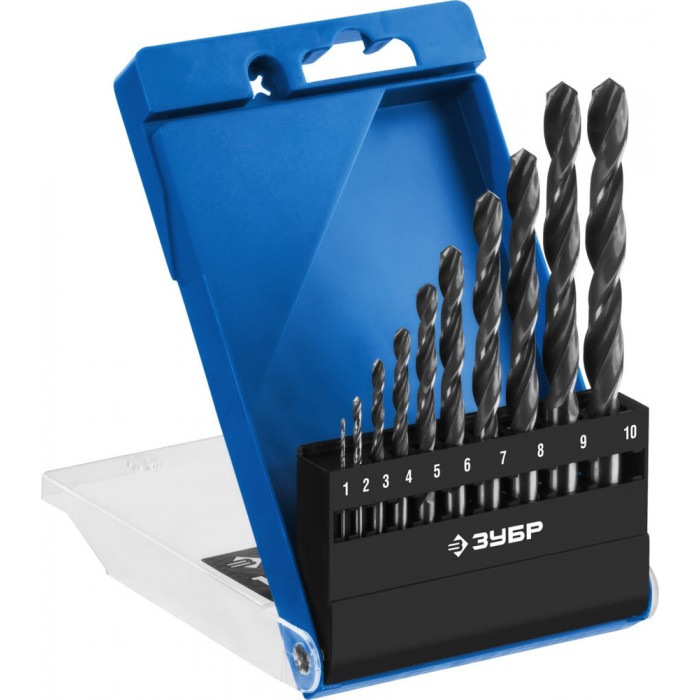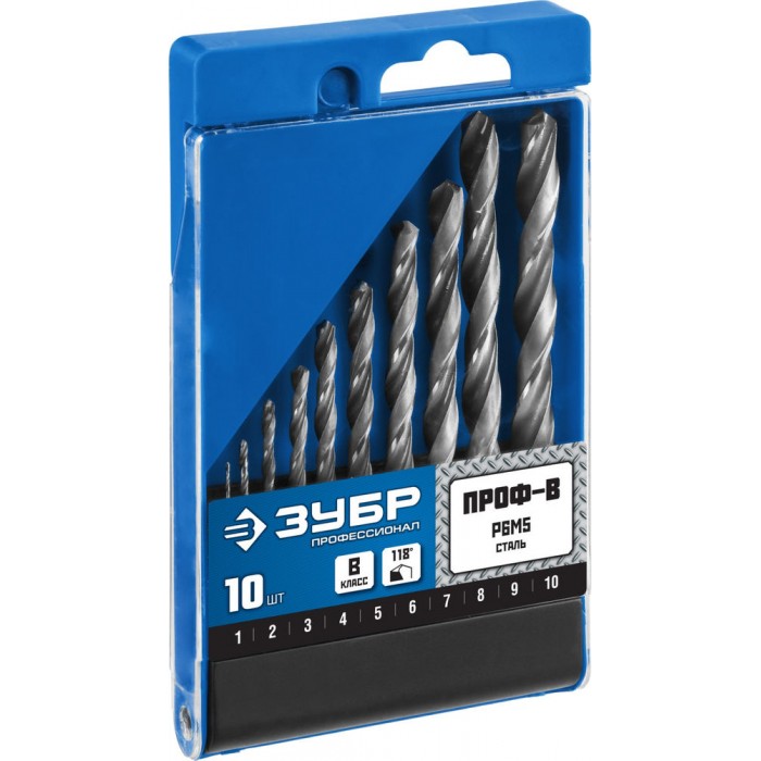 Набор сверл по металлу 1-10 мм 10 шт сталь Р6М5 класс В ЗУБР ПРОФ-В Профессионал 29621-H10
