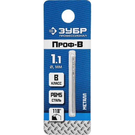 Сверло по металлу 1.1 x 36 мм сталь Р6М5 класс В ЗУБР ПРОФ-В Профессионал 29621-1.1