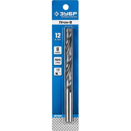 Сверло по металлу 12.0 x 151 мм сталь Р6М5 класс В ЗУБР ПРОФ-В Профессионал 29621-12