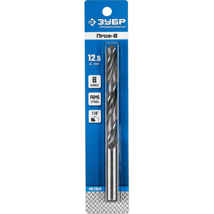 Сверло по металлу 12.5 x 151 мм сталь Р6М5 класс В ЗУБР ПРОФ-В Профессионал 29621-12.5