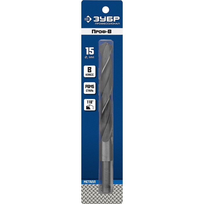Сверло по металлу с проточенным хвостовиком 15.0 x 169 мм сталь Р6М5 класс В ЗУБР ПРОФ-В Профессионал 29621-15