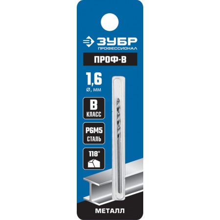 Сверло по металлу 1.6 х 43 мм сталь Р6М5 класс В Профессионал ЗУБР ПРОФ-В 29621-1.6