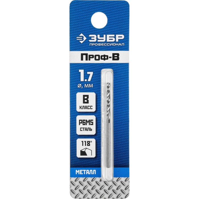 Сверло по металлу 1.7 x 43 мм сталь Р6М5 класс В ЗУБР ПРОФ-В Профессионал 29621-1.7