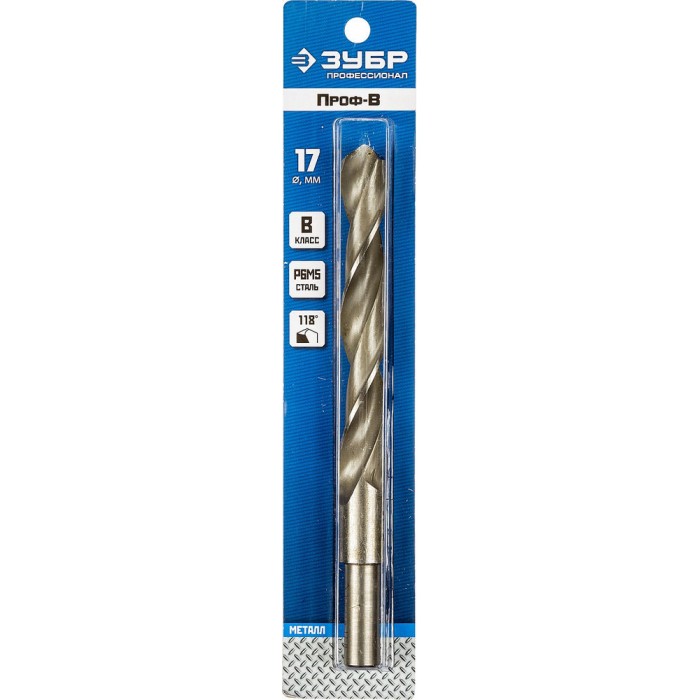 Сверло по металлу с проточенным хвостовиком 17.0 x 184 мм сталь Р6М5 класс В ЗУБР ПРОФ-В Профессионал 29621-17