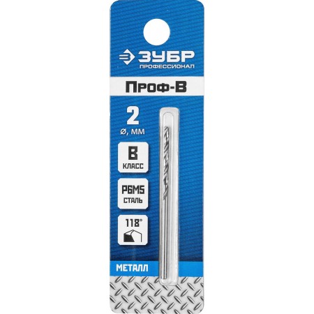 Сверло по металлу 2.0 x 49 мм сталь Р6М5 класс В ЗУБР ПРОФ-В Профессионал 29621-2