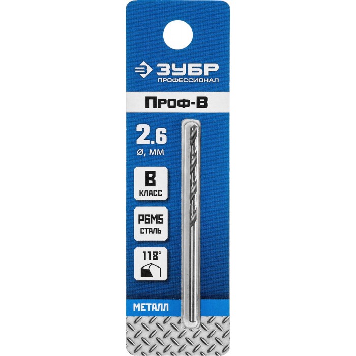 Сверло по металлу 2.6 x 57 мм сталь Р6М5 класс В ЗУБР ПРОФ-В Профессионал 29621-2.6