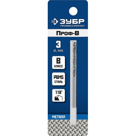 Сверло по металлу 3.0 x 61 мм сталь Р6М5 класс В ЗУБР ПРОФ-В Профессионал 29621-3