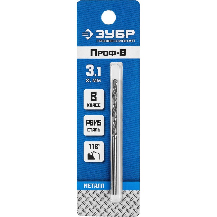 Сверло по металлу 3.1 x 65 мм сталь Р6М5 класс В ЗУБР ПРОФ-В Профессионал 29621-3.1