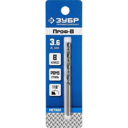 Сверло по металлу 3.6 x 70 мм сталь Р6М5 класс В ЗУБР ПРОФ-В Профессионал 29621-3.6