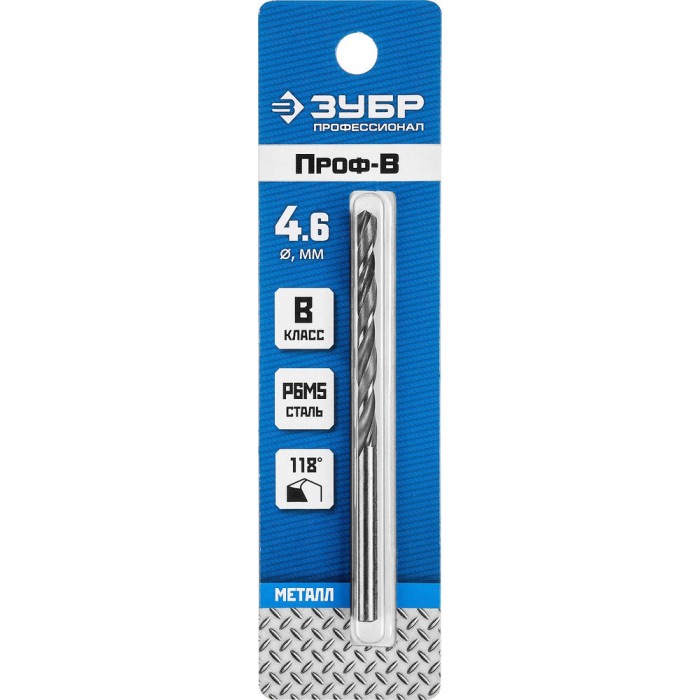 Сверло по металлу 4.6 x 80 мм сталь Р6М5 класс В ЗУБР ПРОФ-В Профессионал 29621-4.6
