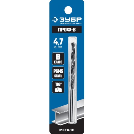 Сверло по металлу 4.7 x 80 мм сталь Р6М5 класс В ЗУБР ПРОФ-В Профессионал 29621-4.7