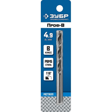 Сверло по металлу 4.9 x 86 мм сталь Р6М5 класс В ЗУБР ПРОФ-В Профессионал 29621-4.9