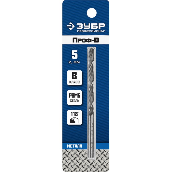 Сверло по металлу 5.0 x 86 мм сталь Р6М5 класс В ЗУБР ПРОФ-В Профессионал 29621-5