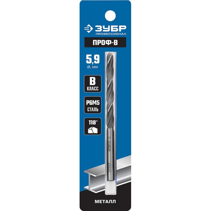 Сверло по металлу 5.9 x 93 мм сталь Р6М5 класс В ЗУБР ПРОФ-В Профессионал 29621-5.9