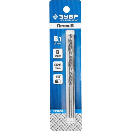 Сверло по металлу 6.1 x 101 мм сталь Р6М5 класс В ЗУБР ПРОФ-В Профессионал 29621-6.1