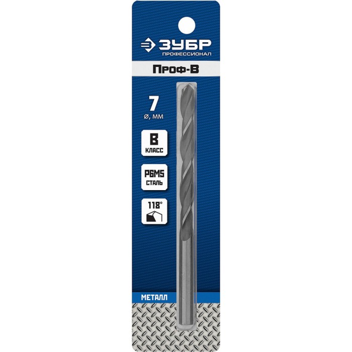 Сверло по металлу 7.0 x 109 мм сталь Р6М5 класс В ЗУБР ПРОФ-В Профессионал 29621-7