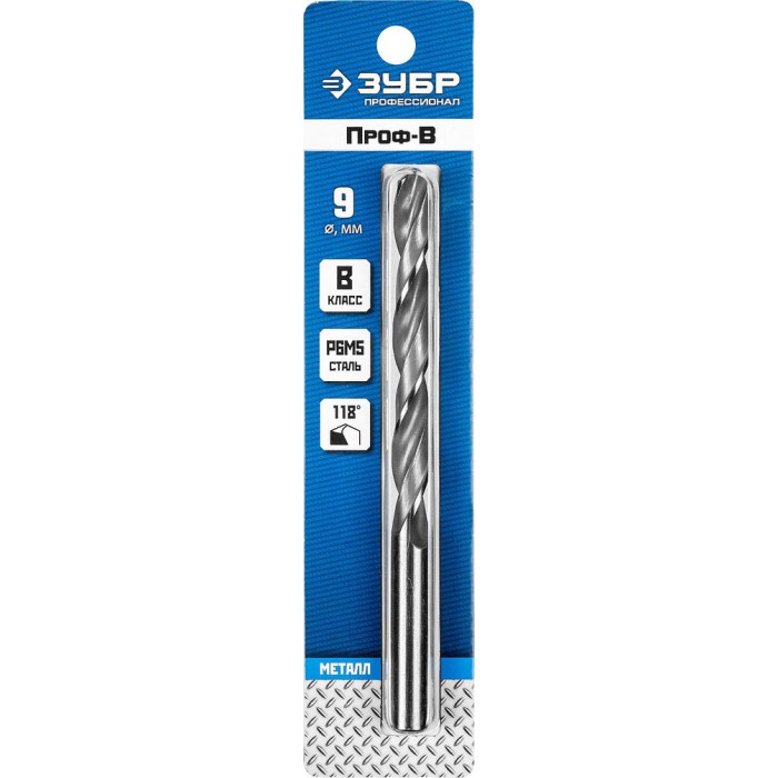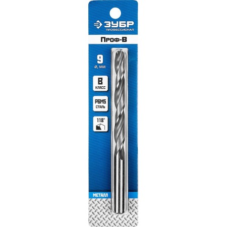 Сверло по металлу 9.0 x 125 мм сталь Р6М5 класс В ЗУБР ПРОФ-В Профессионал 29621-9